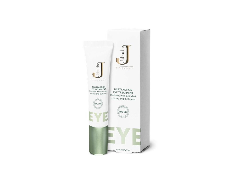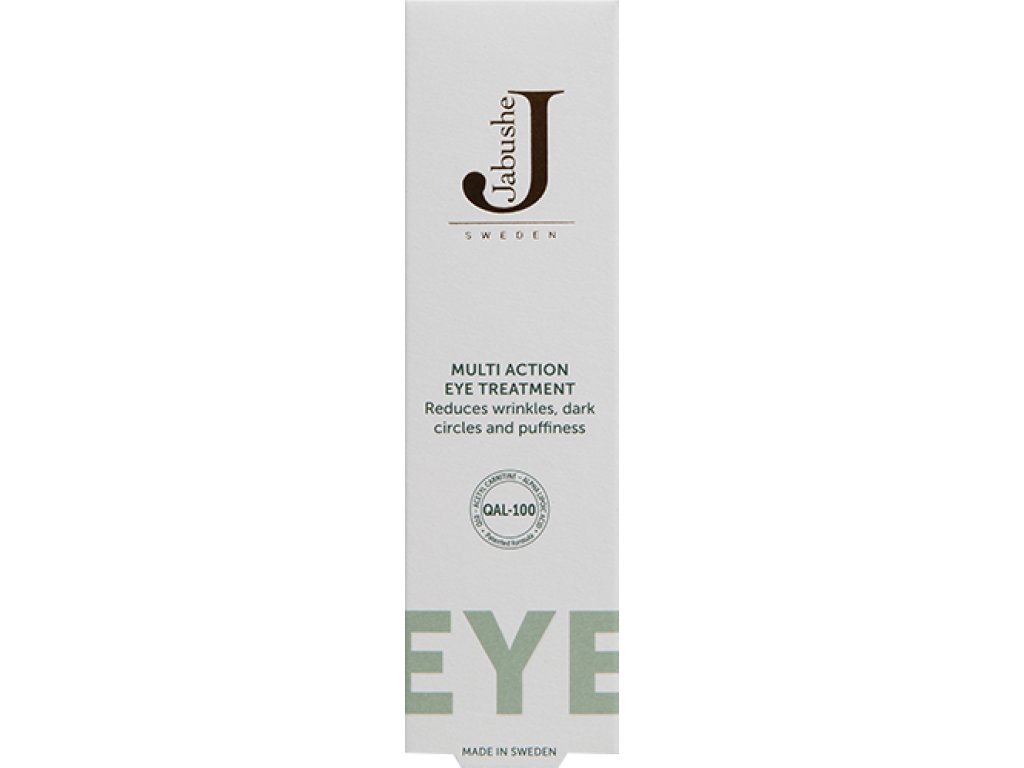 Multifunkční krém pro ošetření okolí očí Jabushe je aktivní oční krém, který omezuje tvorbu vrásek a snižuje viditelnost tmavých kruhů a otoků kolem očí. Obsahuje řadu aktivních látek, jako jsou kyselina lipoová, niacinamid, ceramidy, kofein a výtažky z hlohu a arabského jasmínu. Krém přispívá ke zpomalování stárnutí pleti, k posilování kožní bariéry, ke zvyšování pružnosti a má tonizující účinek. Obsahuje také vitamíny C a E.