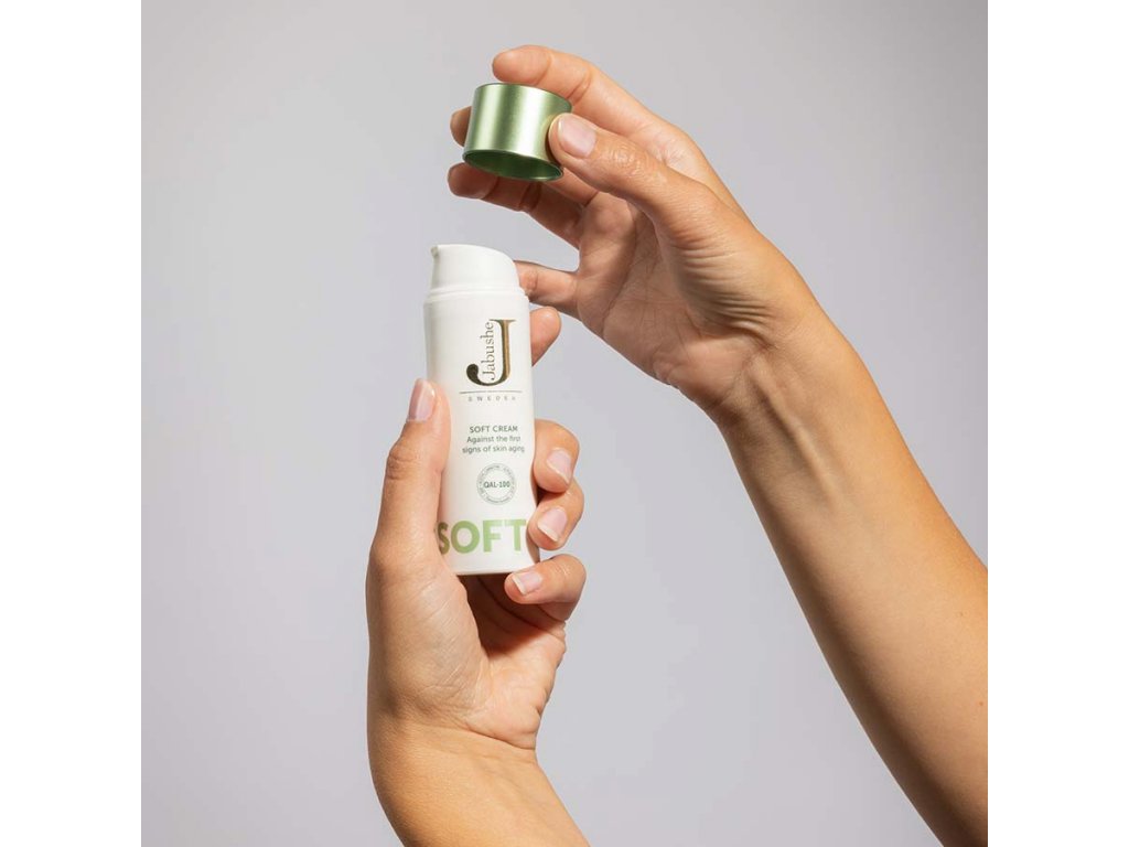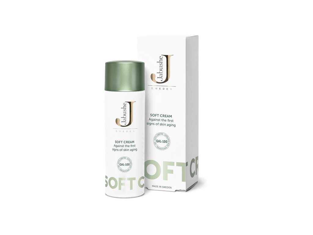 Jabushe Soft Cream je jemnější verze Jabushe Original Cream s nižší koncentrací QAL-100 a je kombinovaným denním/nočním krémem pro ty, kteří začínají pozorovat úplně první známky stárnutí pleti nebo pro ty, kteří mají o něco citlivější pleť. Dodává pokožce jemnou a vláčnou s pěkným leskem.